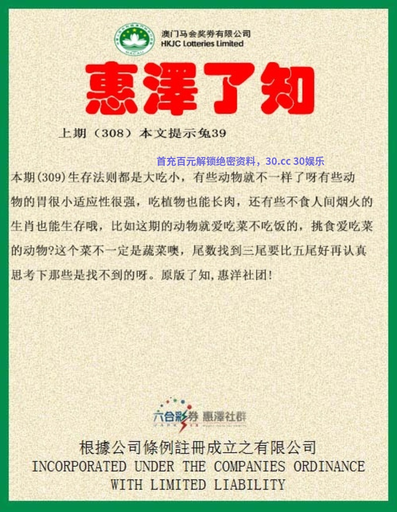 【惠泽了知】309期:生存法则都是大吃小,有些动物就不一样了呀有些动物的胃很小适应性很强,吃植物也能长肉,还有些不食人间烟火的生肖也能生存哦,比如这期的动物就爱吃菜不吃饭的,挑食爱吃菜的动物?这个菜不一定是蔬菜噢,尾数找到三尾要比五尾好再认真思考下那些是找不到的呀。原版了知,惠洋社团!